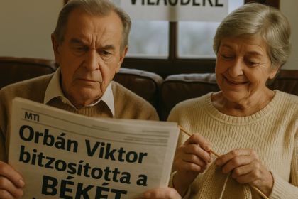 Lujza (az újságot böngészve, mosolyogva):– Na, Jenő! Nézd csak! Azt írja az Index — most „tűzifa-segélyt” kapnak a rászorulók a kormánytól. Végre igazán jót tesznek az emberekkel — legalább a hideg té...