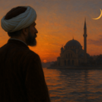 Naplemente. A tenger narancsszínű. Jenő egy strandszékben ül, lábát homok takarja.